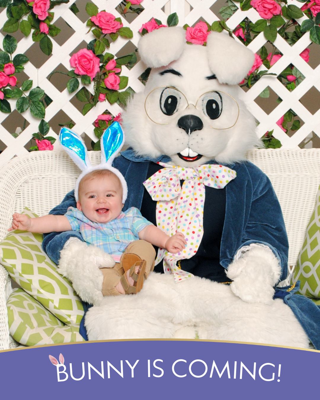 Go to whereisbunny.com, choose your photo package and book your Bunny photo experience. After you complete your reservation, you'll receive a confirmation email with additional information. Don't forget you get free gifts when you book online!